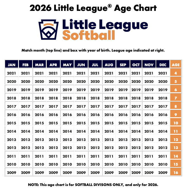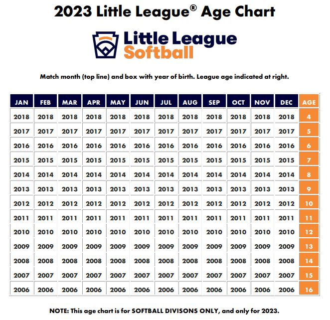 Use the Age Determination Chart below to determine the "league age" for your player. KAU Little League has several divisions that are grouped by league age to make the competition fair for all players.